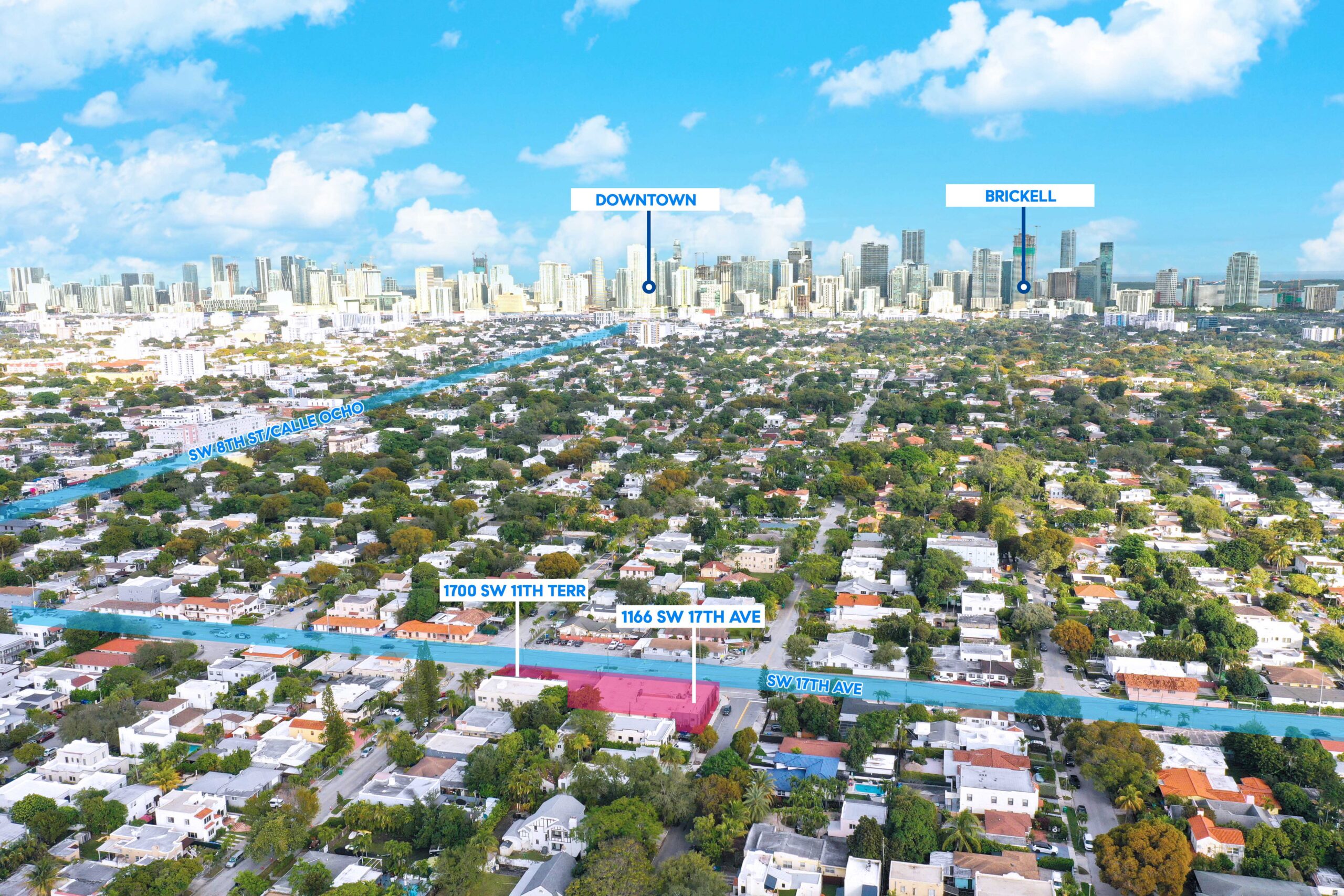 The Porosoff Group at Compass Commercial is pleased to present the exclusive offering of 1166 SW 17th Ave & 1700 SW 11th Terrace, Miami, FL 33135 — a 100% occupied retail strip center in Miami’s Little Havana / Shenandoah corridor. The 8,299 SF retail building sits on a 12,573 SF lot with 118 feet of frontage on SW 17th Avenue. An adjacent 1,053 SF house at 1700 SW 11th Terrace is included on a separate 6,732 SF lot, valued at $550,000, with the retail component priced at a 5.0% cap rate on NOI. Combined, the parcels total 19,304 SF of land.