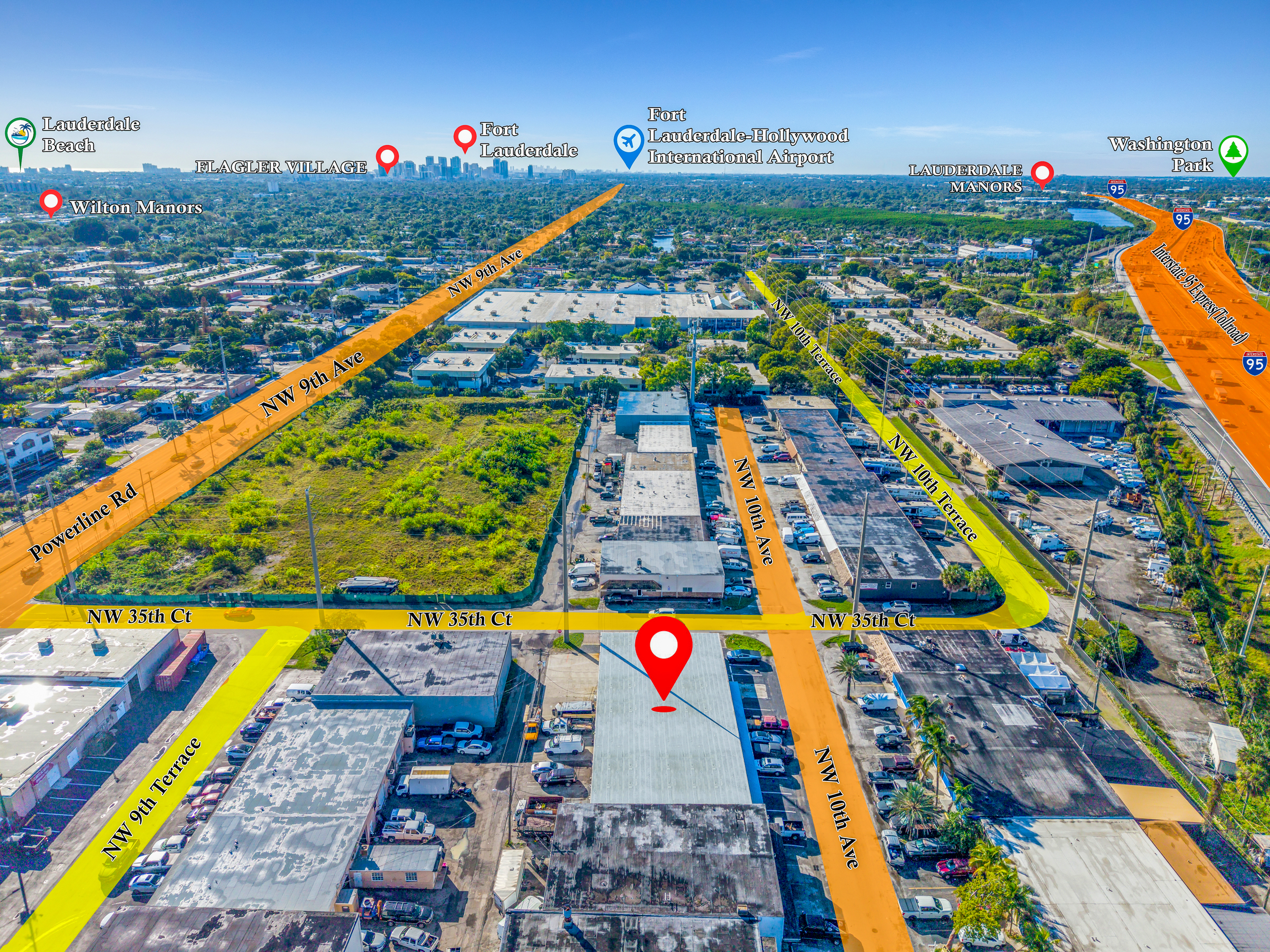 The property offers functional bay sizes, grade-level loading, ample parking, and highly efficient layouts ideal for a wide range of light industrial users. Tenants benefit from excellent connectivity with immediate access to I-95, Commercial Blvd, Powerline Road, and Central Broward’s major logistics arteries.