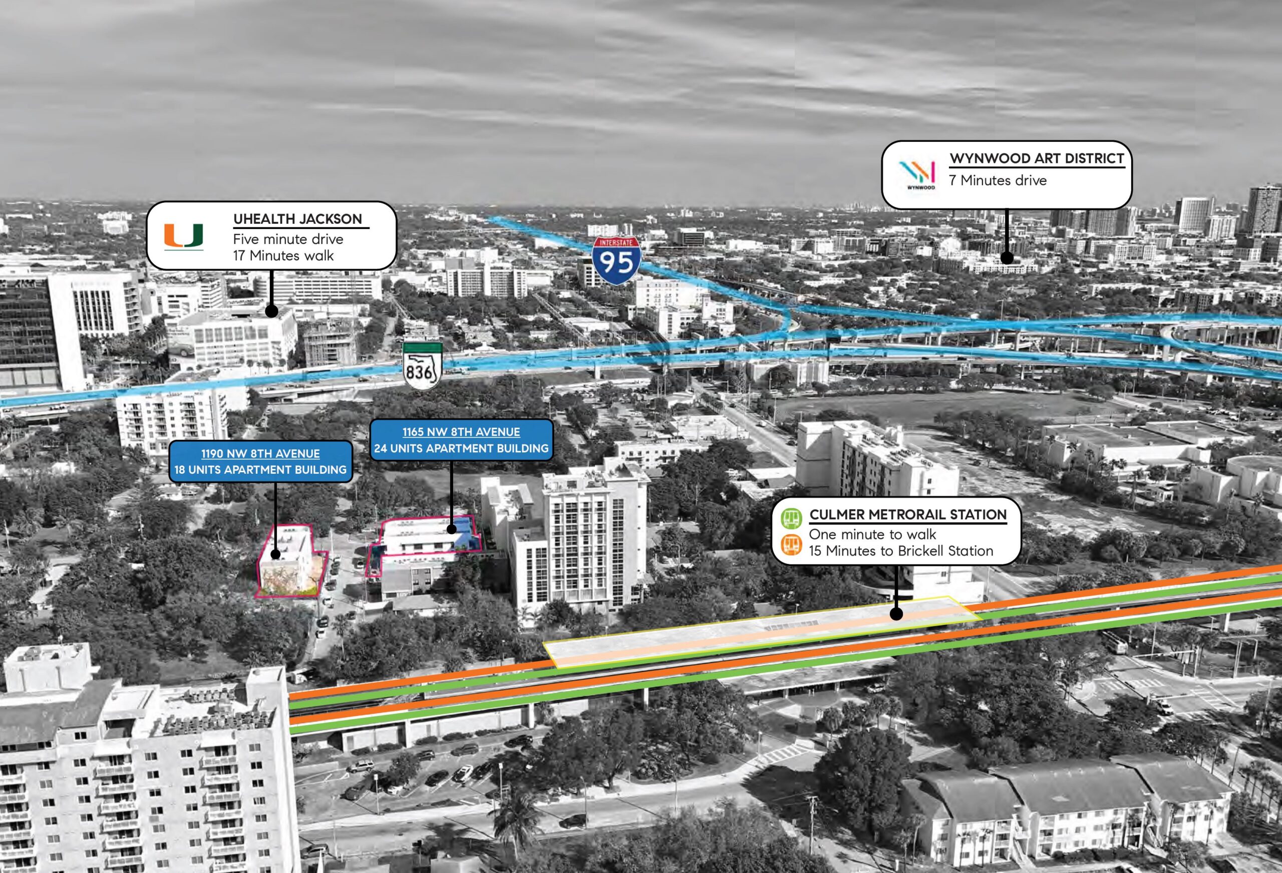 The property is ideally situated steps from the Culmer Metrorail Station, providing direct rail access to Brickell, Downtown Miami, and the Health District in under 15 minutes. This transit-oriented location, combined with proximity to Jackson Memorial Hospital / UHealth, South Florida’s largest employer with over 30,000 employees, and the $800M+ I-395 Underdeck signature park project, positions Highland Park Residences at the epicenter of Miami’s next wave of urban transformation.